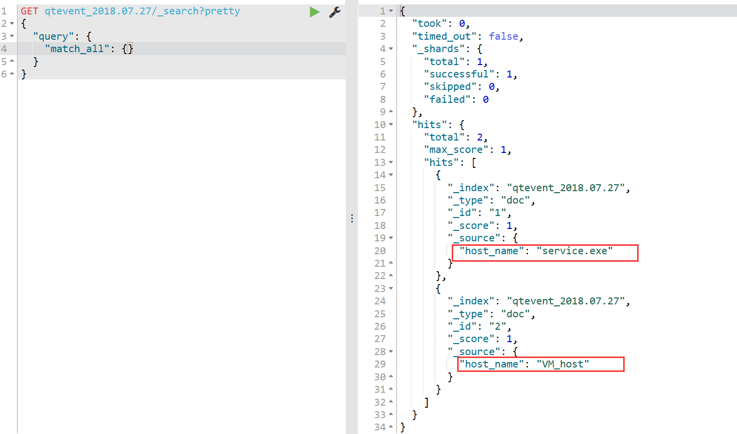 - 使用query_string 单独检索service 检索不到任何内容, 但是指定了host_name域则可以检索到