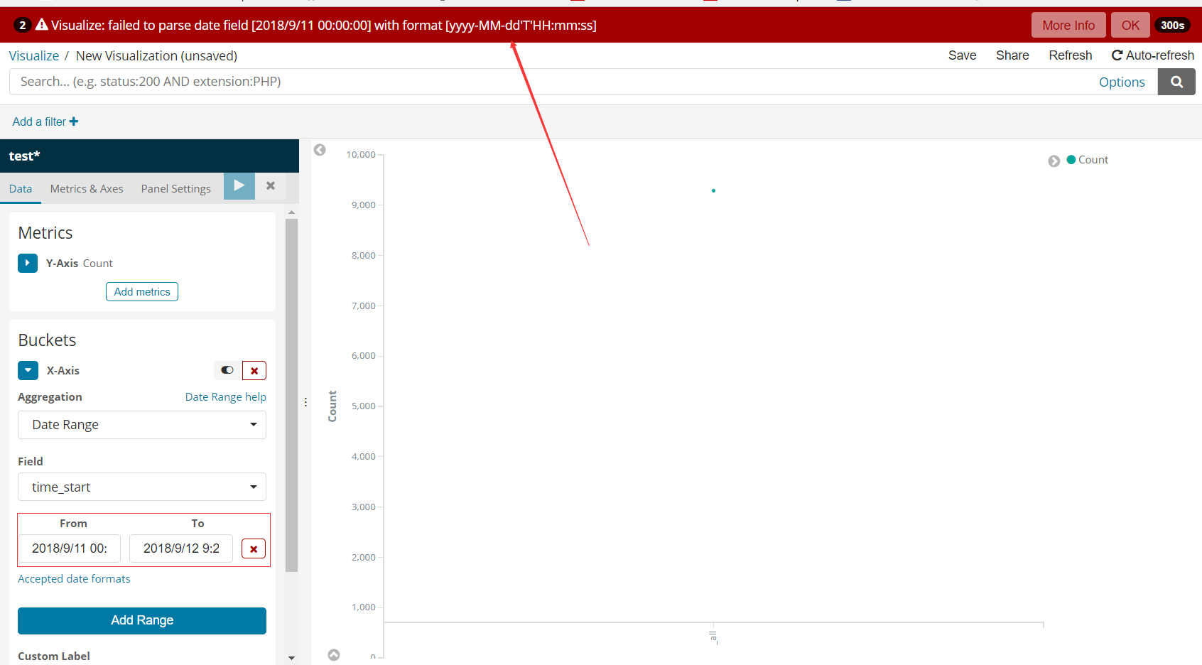 Visualize: failed to parse date field [2018/9/11 00:00:00] with format [yyyy-MM-dd'T'HH:mm:ss]原始时间数据: